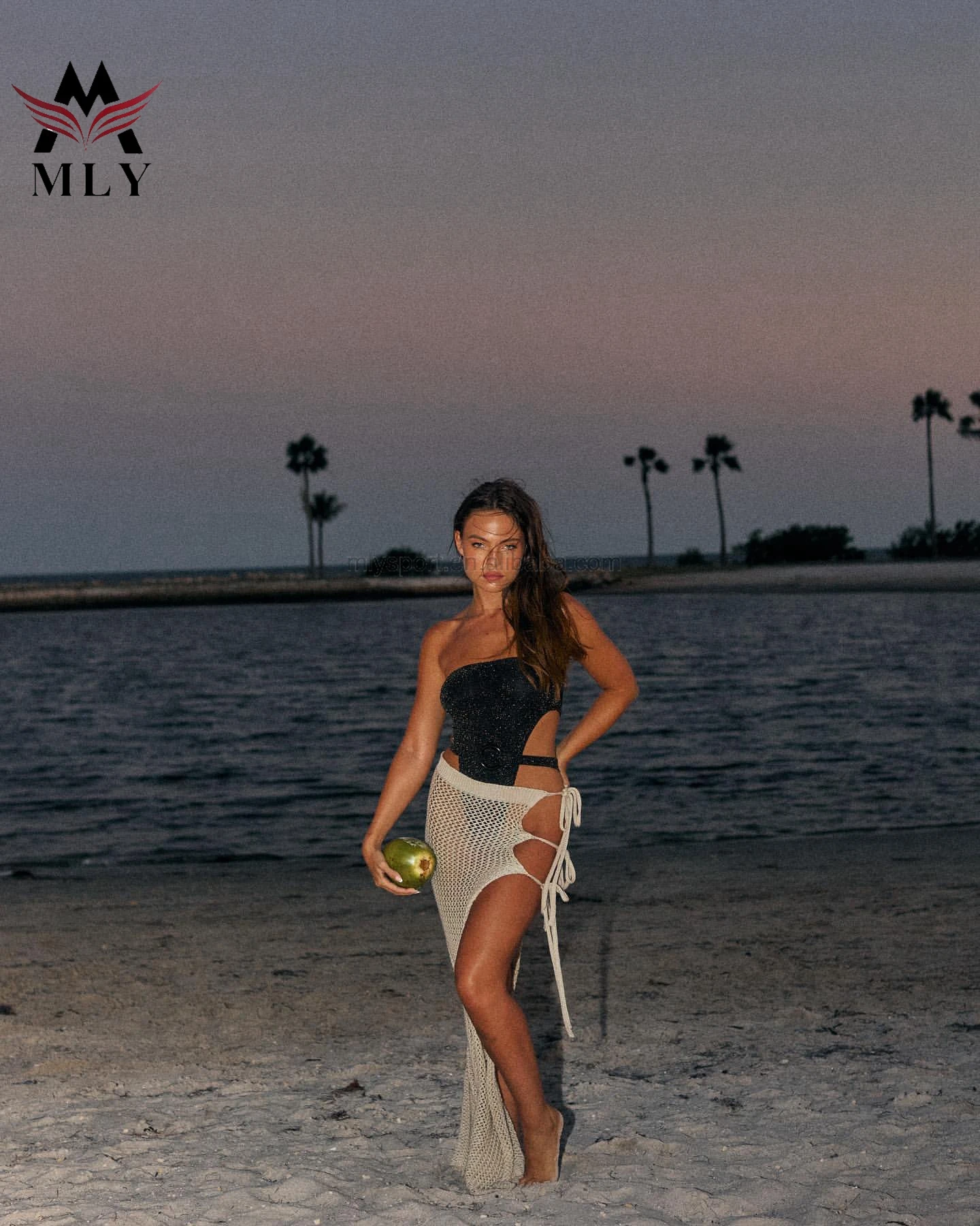 Modest Swimwear Shoulderless Solid Black Bikini Set Sexy Monokini One Piece Swimsuit